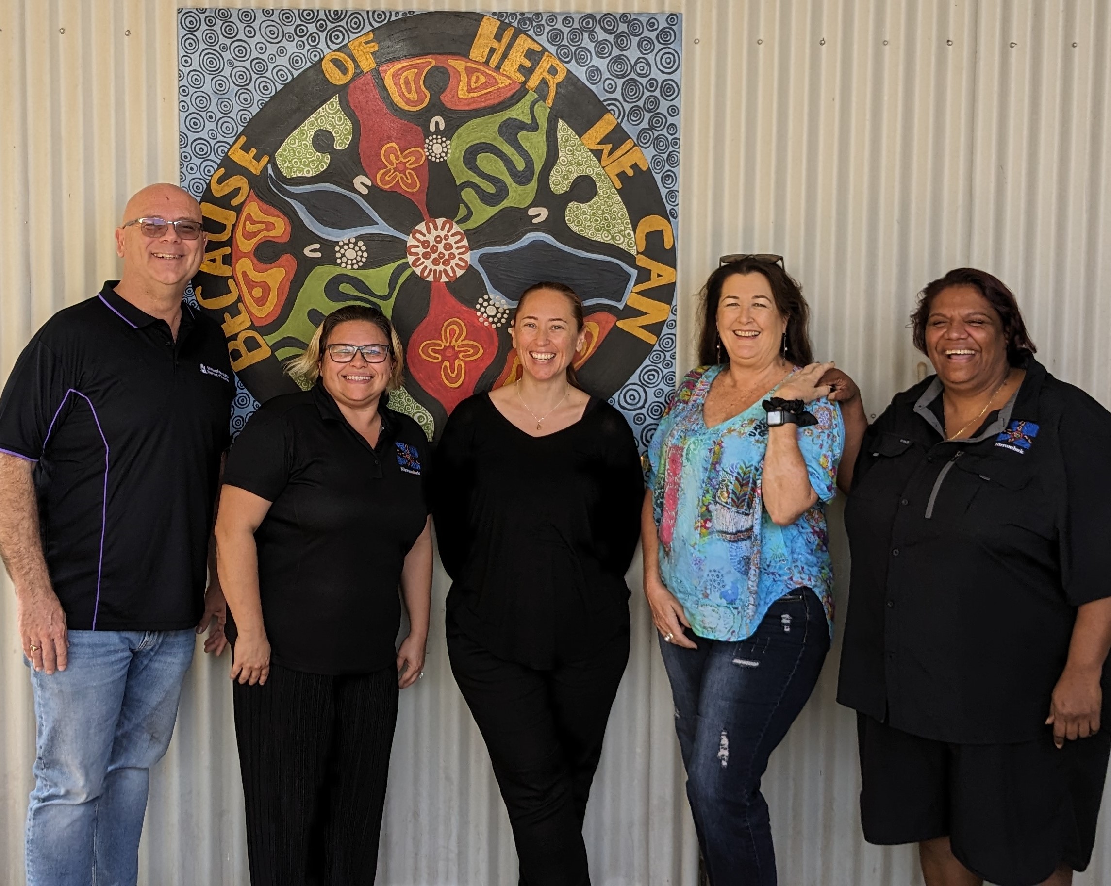 Pictured from left to right: Lenney (Senior Advisor, Department of Communities), Margie Martin (incoming Facility Manager, Nirrumbuk) Rebecca Grice (Advisor, Department of Communities), Caz Fryson (outgoing Facility Manager, Nirrumbuk) and Charna Kelly (Case Manager, Nirrumbuk).