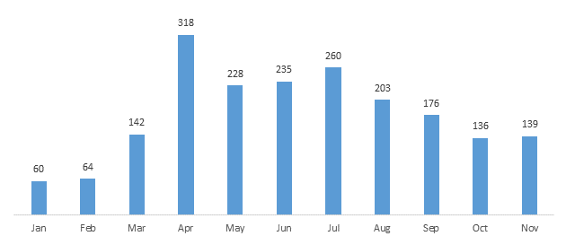 There have been almost 2,000 travel-related complaints lodged with Consumer Protection so far this year, with the number of complaints peaking during the months of April to July 2020 at the height of the COVID-19 restrictions (see attached graph).