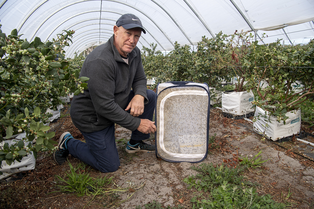 Western Australian researchers have begun releasing native blowflies into three tunnel houses each holding more than 500 blueberry plants, to determine what impact they will have on the final yield and size of the fruit.