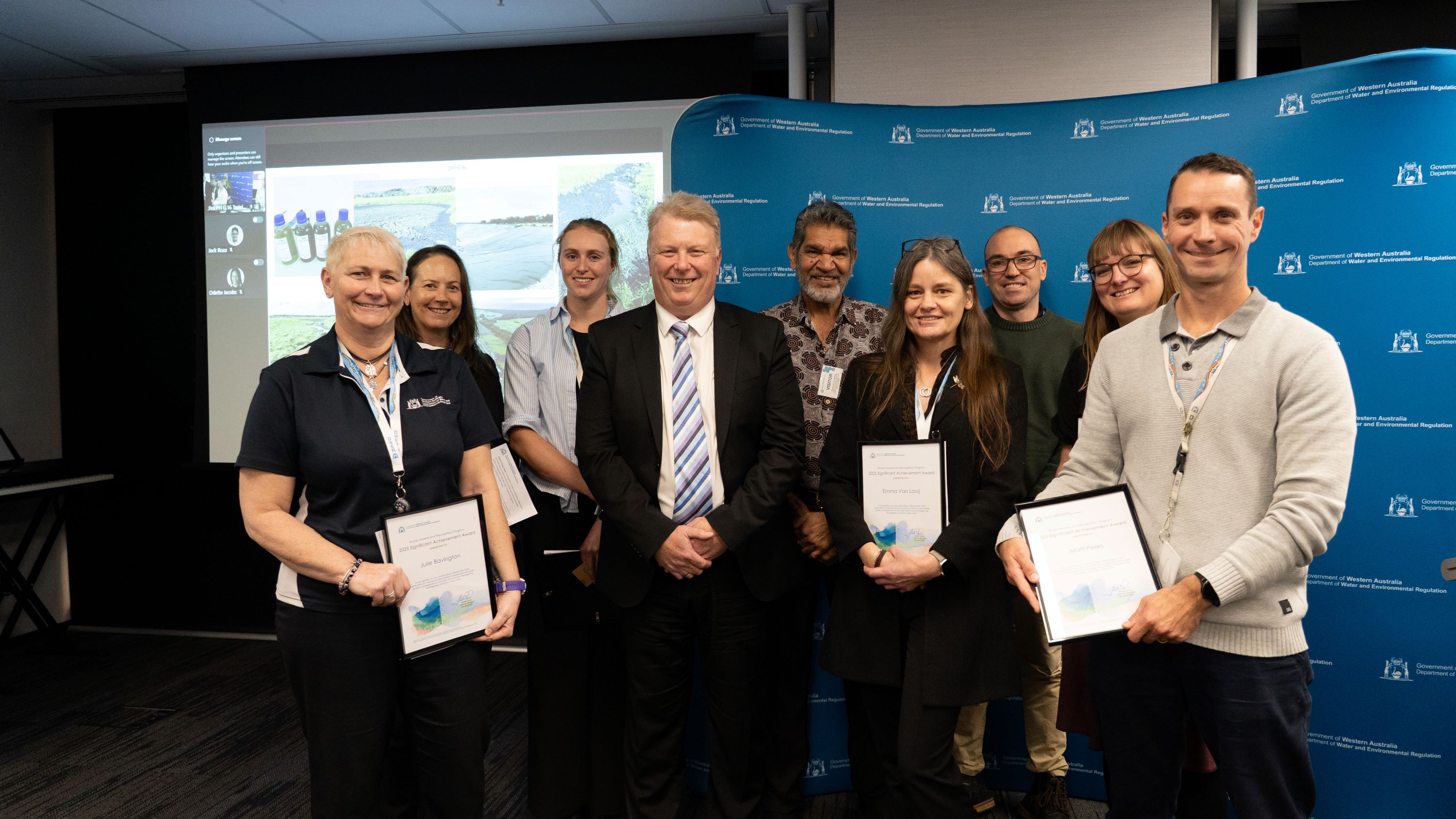 Congratulations to Allan Lee, Beverley Davies, Daniel Hunter, Elke Reichwaldt, Emma Van Looij, Jaren Hart, Jennifer Stritzke, Julie Bavington, Matt Peers, Niamh Rayne, Rachael Duffield, Rebecca Palandri, Tarryn Jones from the Environmental Crime Team, South Coast Region and Aquatic Science Branch - recipients of this year's Significant Achievement Award.
