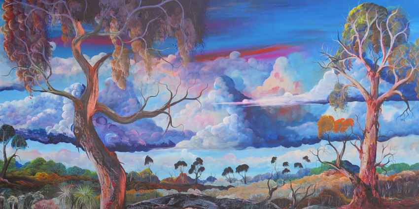 The exhibition includes paintings by prisoners enrolled in Visual Arts studies at Curtin University through the Justice and Equity Through Art (JETA) program.