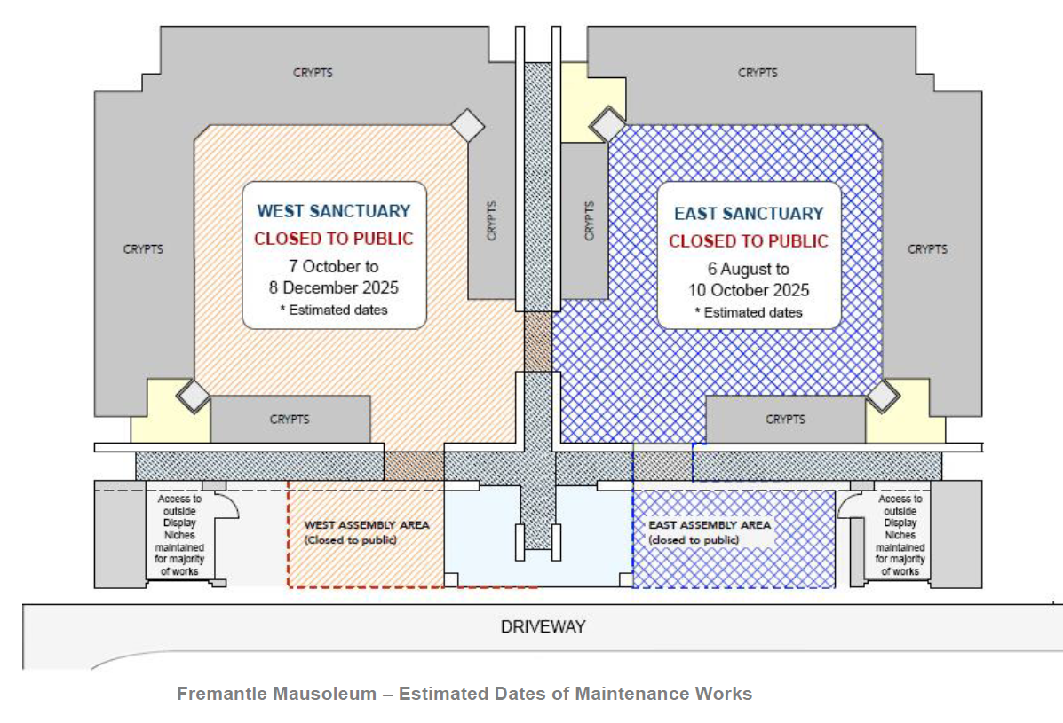 Thank you for your understanding as we complete these important repairs to preserve the dignity and care of the mausoleum spaces.