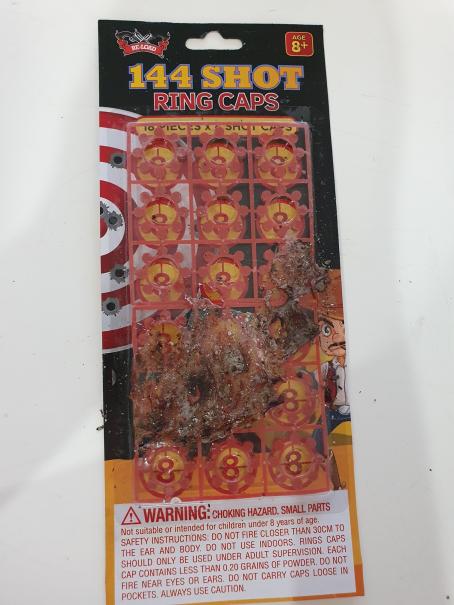 The 11 year old boy was opening a packet of ring caps to load into his cap gun when several of the capsules exploded, causing second degree burns to his right hand. He was taken to hospital for treatment.