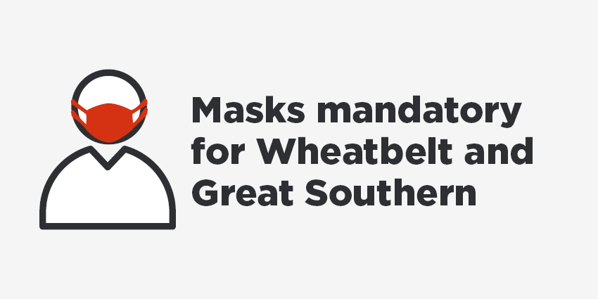The mask rule also applies to anyone who has been in the Wheatbelt and Great Southern regions since January 20 and has since travelled to another region that is not affected by mask requirements.