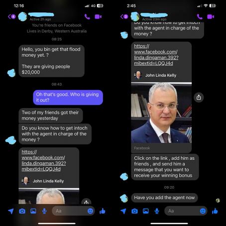 - Kimberley flood victims being targeted by fake offers of financial relief from scammers