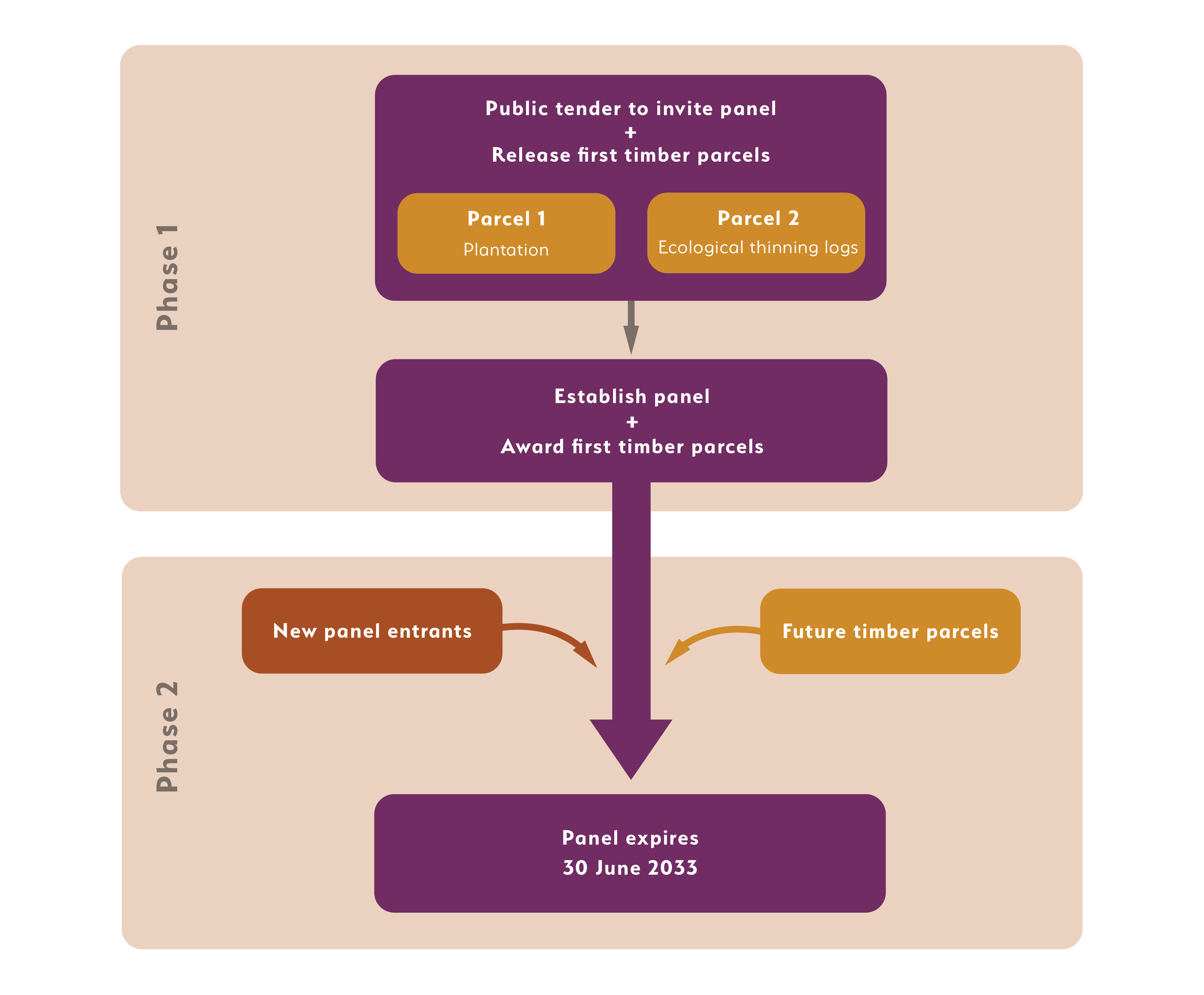 Over the term of the panel, new panel members can be appointed and additional timber parcels released for the panel to consider.