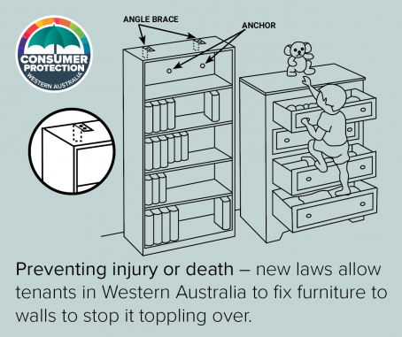Laws to allow renters to fix furniture to walls to prevent death or injury to children from toppling furniture have passed through State Parliament.