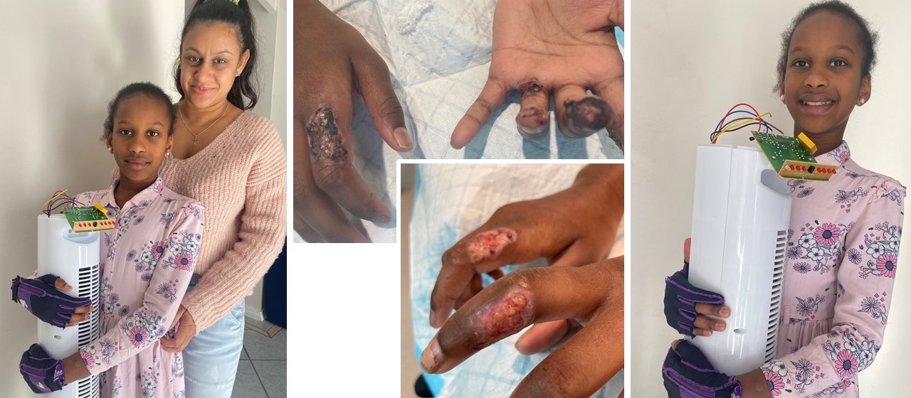 Unable to use her hands properly, the Year 5 student missed several weeks of school. She will wear custom-made gloves for up to two years and continues to do physiotherapy and occupational therapy to maintain normal movement and minimise scarring.