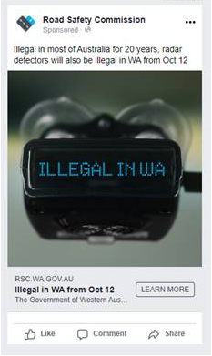 Road Safety Commission/State Government Radar detector legislation change campaign educates West Australians on the banning of radar detectors – bringing WA in line with the rest of the country.