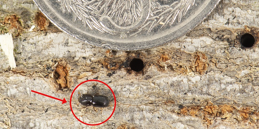 Photo caption: Polyphagous Shot-Hole Borers are only 2mm long and can be hard to spot but residents are asked to check their trees for signs of other damage including wilting, staining and multiple entrance holes on tree trunks or branches.