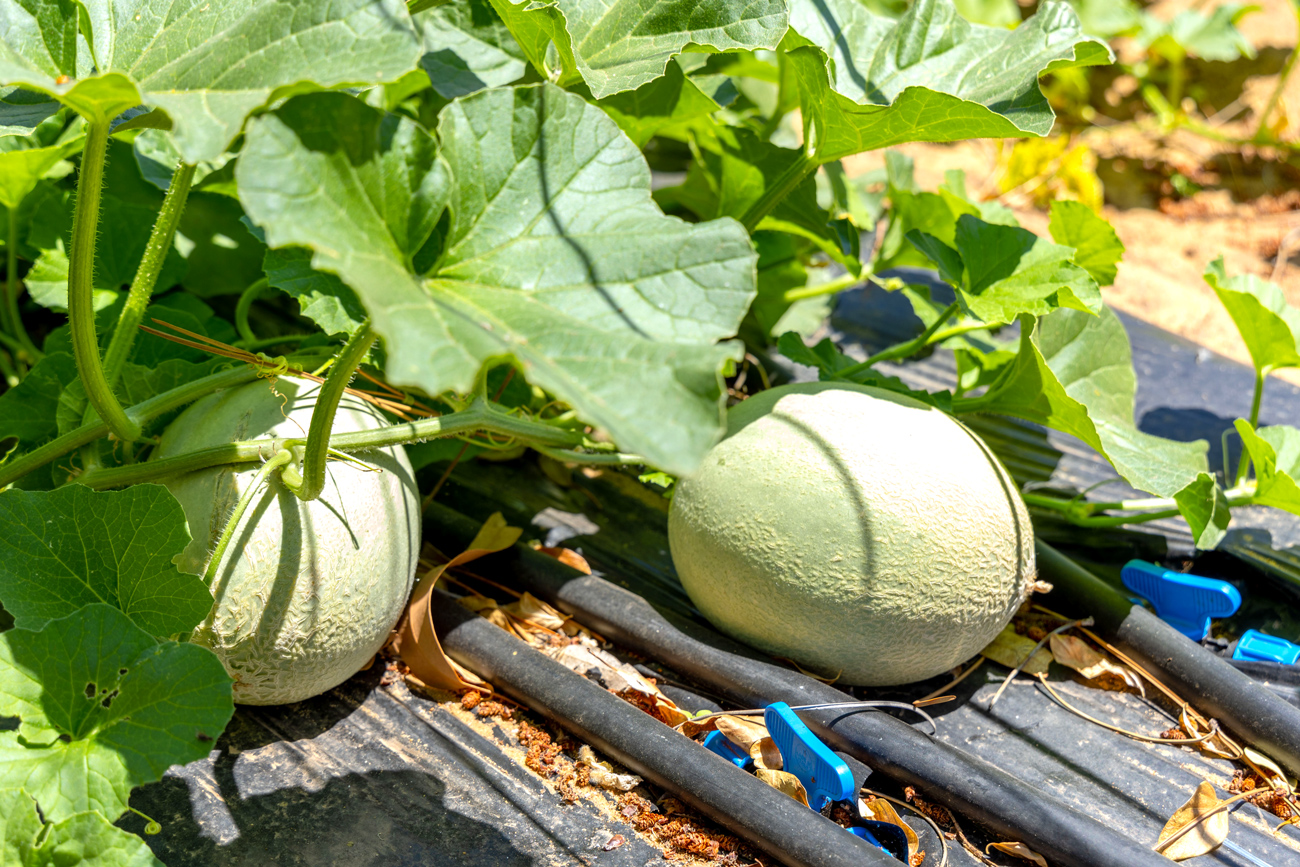 Picture caption: Rockmelons grown as part of research trial investigating the potential use of marginally saline water in horticulture production.