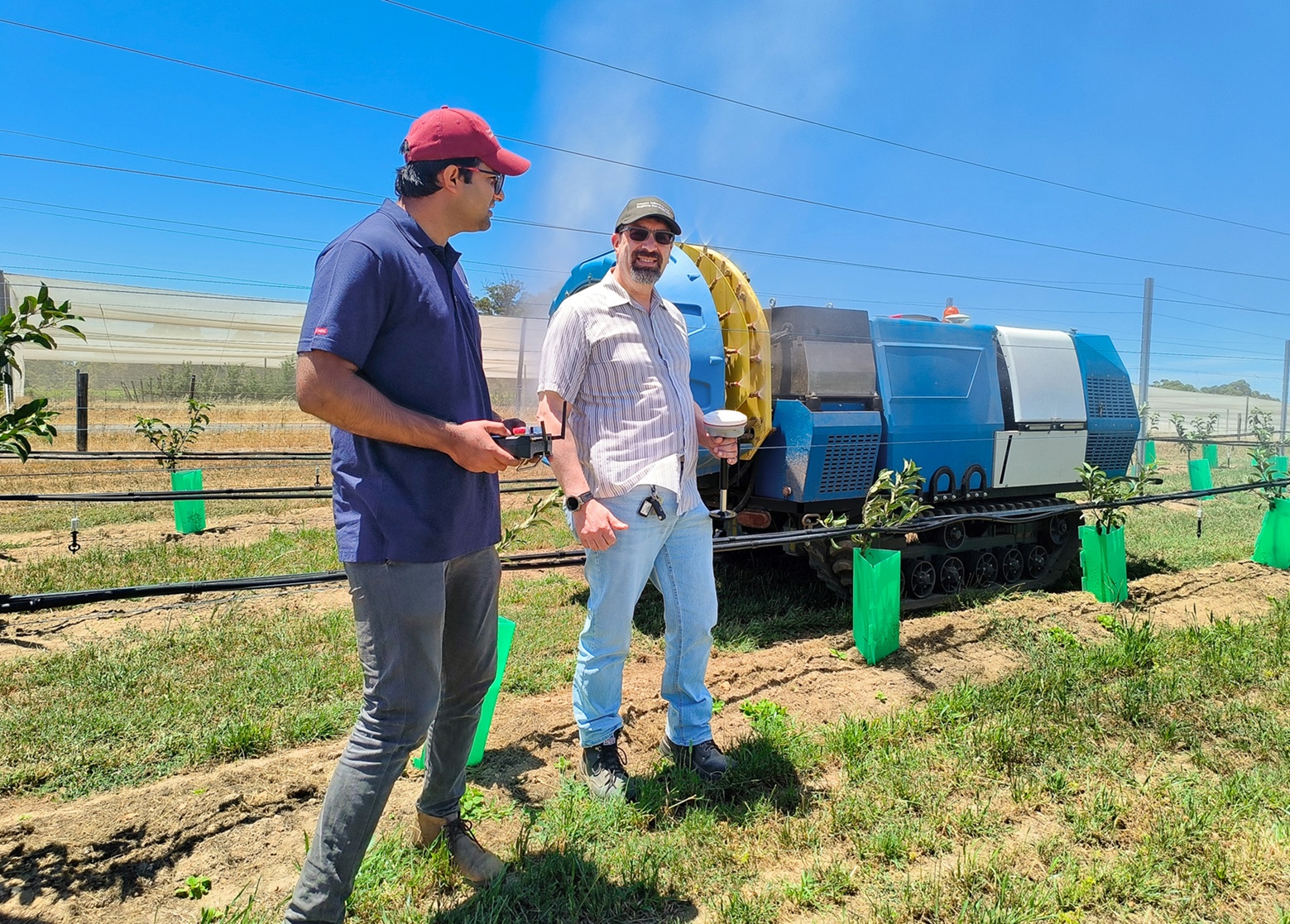 “The diesel autonomous spray unit is guided by digital GPS maps, which create a travel path for the machine to run from the shed to the orchard and then up and down the orchard rows without the need for a driver or even a remote control,” Dr Ullah said.