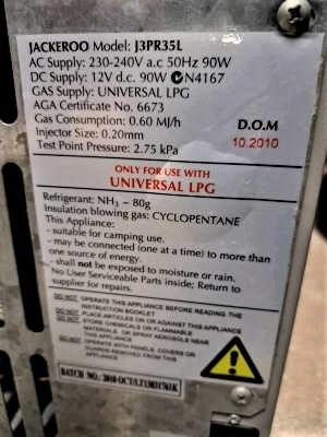 - Jackeroo J3PR35L three-way portable refrigerators, made in 2010, cannot be sold in WA