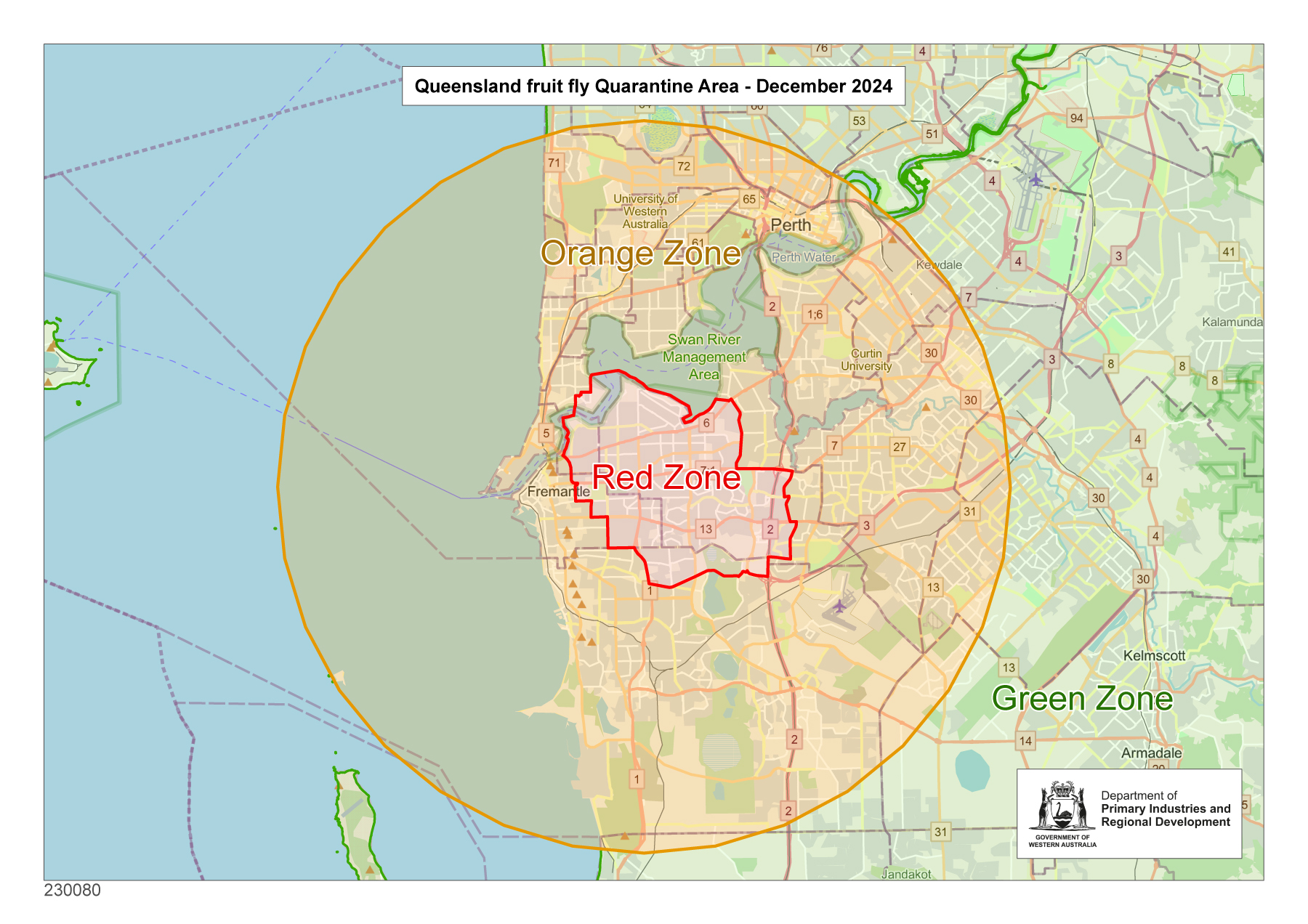 For more information on the Qfly Quarantine Area requirements, including an interactive map to determine if you are in the red or orange zones, visit the DPIRD website https://www.wa.gov.au/qfly.