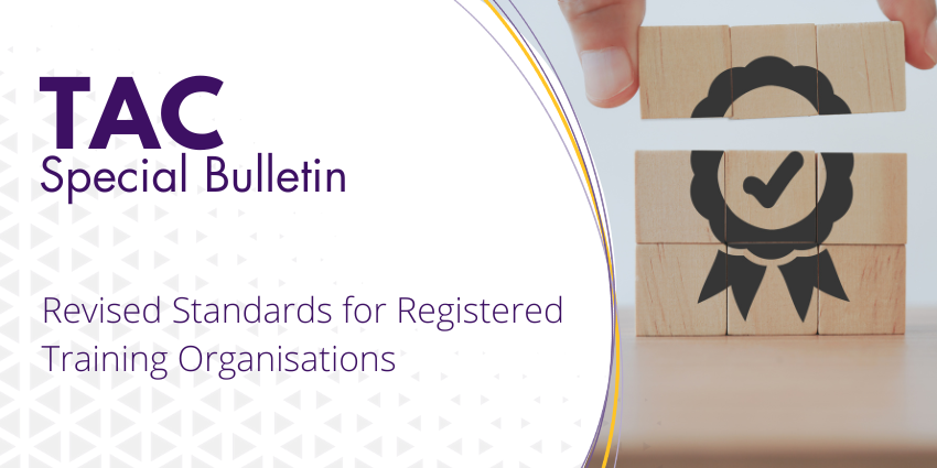 TAC is offering a series of webinars, beginning with a webinar on an overview of the Standards on 23 October and a webinar on Creating a Child Safe Organisation on 28 October. Please note that participation in the live sessions is restricted to TAC regulated RTOs only. Recordings of these sessions will be available on the TAC YouTube channel.