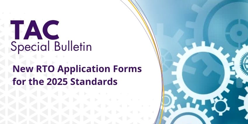 New RTO application forms aligned with the Registration Standards 2025 (2025 Standards) are now available in the TAC RTO Portal.