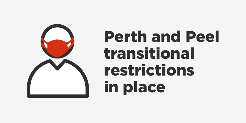 Transitional restrictions are in effect from 12.01am Tuesday, 6 July 2021 until 12.01am Monday, 12 July 2021 for Perth and Peel, as we continue our safe and sensible pathway to pre-lockdown life.
