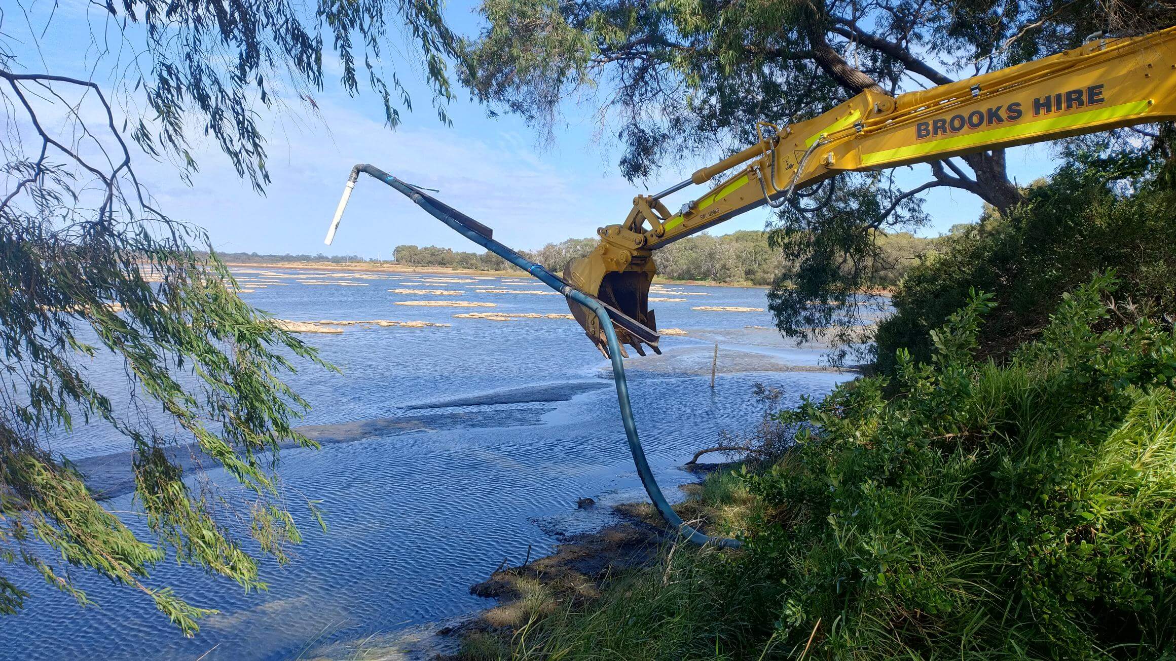 A vacuum sucker attached to an excavator was used to remove the sludge, which was then trucked to the Busselton Wastewater Treatment Plant for drying and treatment.