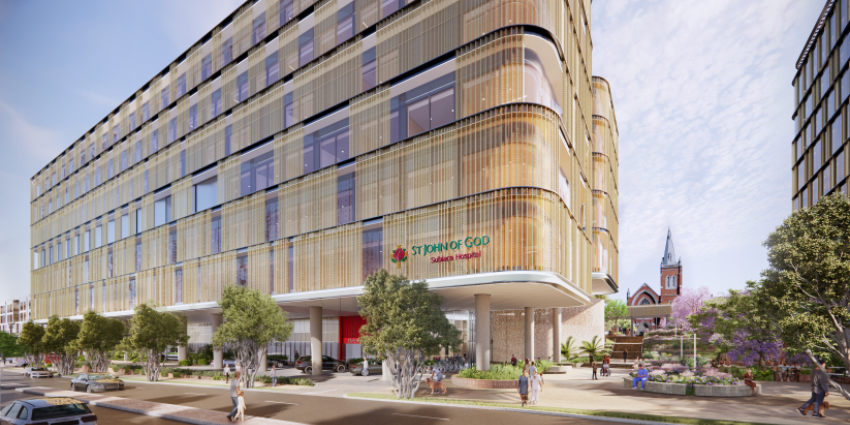 The hospital redevelopment includes a nine-storey clinical block, 11-storey medical suites and research building, and a two-storey addition to the existing multi-storey car park.