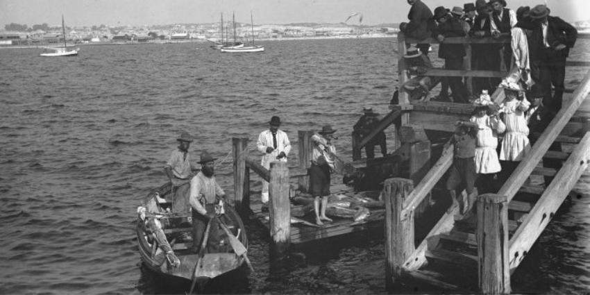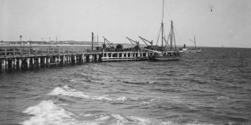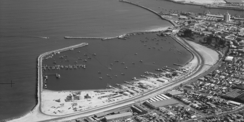 The Swan River Colony was proclaimed by the British in 1829, with Fremantle designated as the colony’s port. In 1831, the first stone jetty was built at South Bay, the area now known as Fishing Boat Harbour. The jetty soon deteriorated and was replaced in the mid-1850s by the 484 foot-long South Jetty. Fishermen moored their boats in the natural harbour of South Bay and sold their catch at South Jetty, despite limited facilities for storing and preserving their produce.