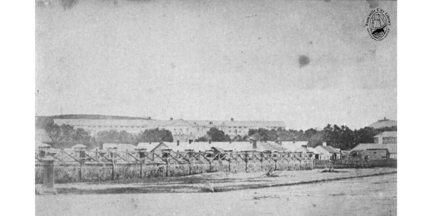 View of Main Cell Block shortly after the Prison was completed, 1860. Image credit: City of Fremantle Local History Centre (LH002111).