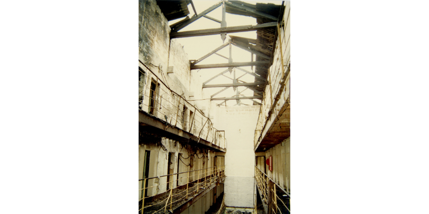 Damage to the Main Cell Block following the 1988 riot. Image credit: Fremantle Prison Collection.