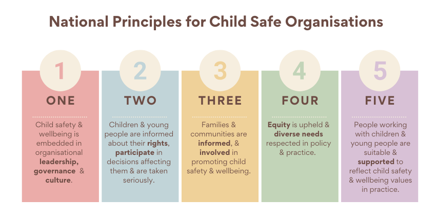 - National Principles for Child Safe Organisations - A framework endorsed by the Australian Government to ensure child safety in all organisations engaging with children.