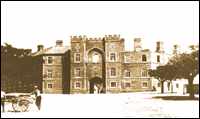 A grand new Government House was built by convicts on the same site as the old building on St George's Terrace. It was finished by 1864 and this photograph shows the Pensioner Guard and volunteers assembled outside the new building after the presentation of commissions. The building is still used as Government House today.