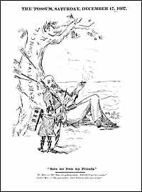 Throughout the 1880s, Broome had become increasingly unpopular with the colonists for his perceived 'mismanagement' of government. In this cartoon, his desire to escape while the West Australian newspaper stands with arrows in hand, vigilantly guarding the Governor.