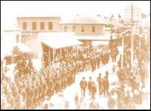 In Perth, elaborate floral arches spanned the city's main streets and buildings were decked with banners and flags to welcome the Governor and the new Constitution.