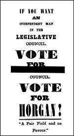 Horgan was popular with Perth workers and others who felt they had little voice in the existing system of government. He won the election by just three votes, but within a year he had lost his seat at another poll.