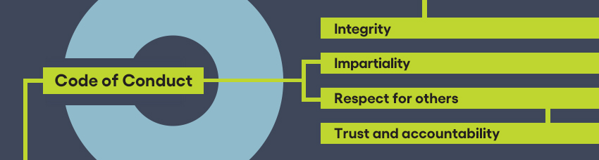 Driving our integrity is our new Code of Conduct which builds on the Public Sector Code of Ethics by describing how the 4 standards of integrity, impartiality, respect for others, and trust and accountability apply to our daily work.