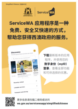 Download this social media tile to share information about the ServiceWA app in Chinese Simplified.