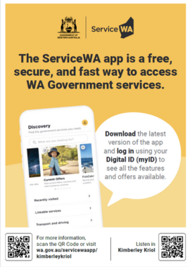 Download this poster to share information about the ServiceWA app in Kriol.