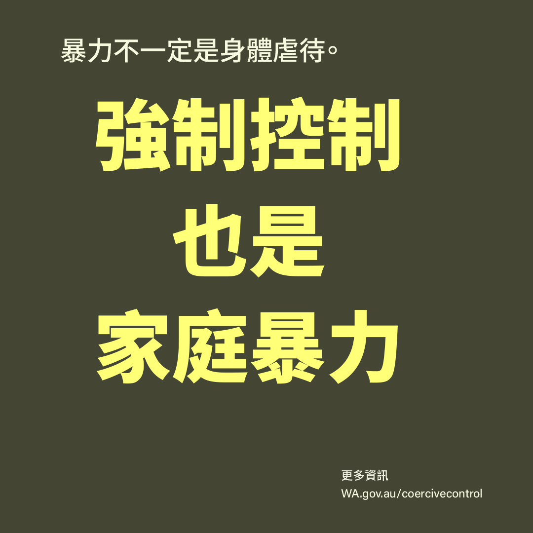 Find family and domestic violence video resources in Chinese (Traditional), including what coercive control is, how to help someone experiencing family and domestic violence, and what to do if you think you might be experiencing coercive control.