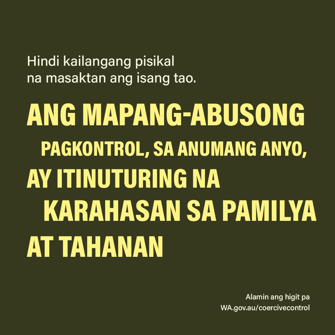 A range of 'Coercion Hurts' campaign resources are available in Filipino to download and share with your community.