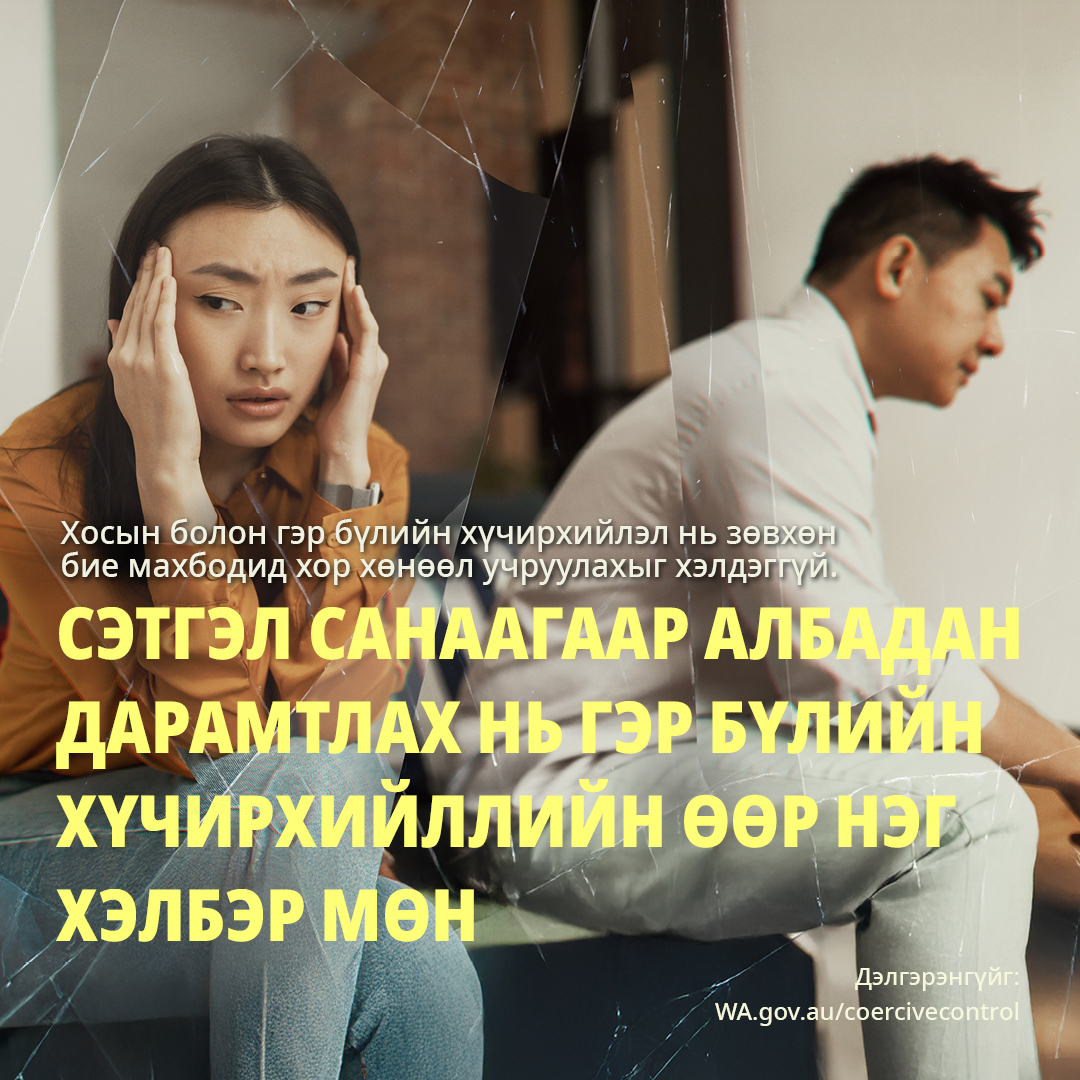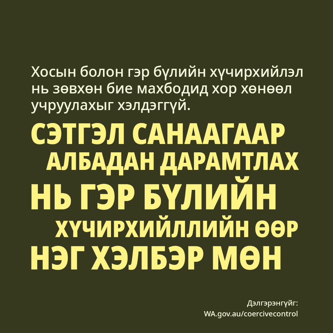 A range of 'Coercion Hurts' campaign resources are available in Mongolian to download and share with your community.