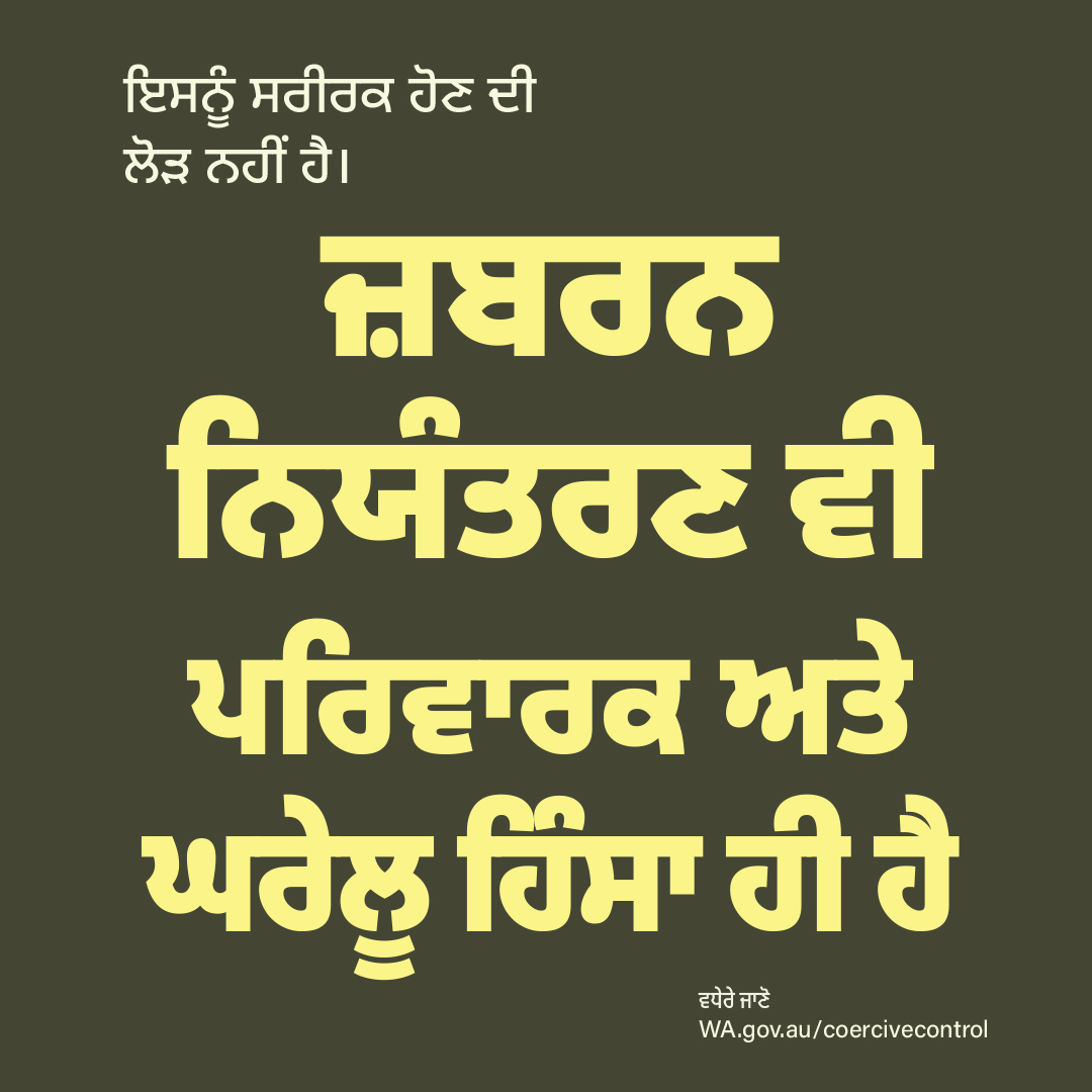 Find family and domestic violence video resources in Punjabi, including what coercive control is, how to help someone experiencing family and domestic violence, and what to do if you think you might be experiencing coercive control.