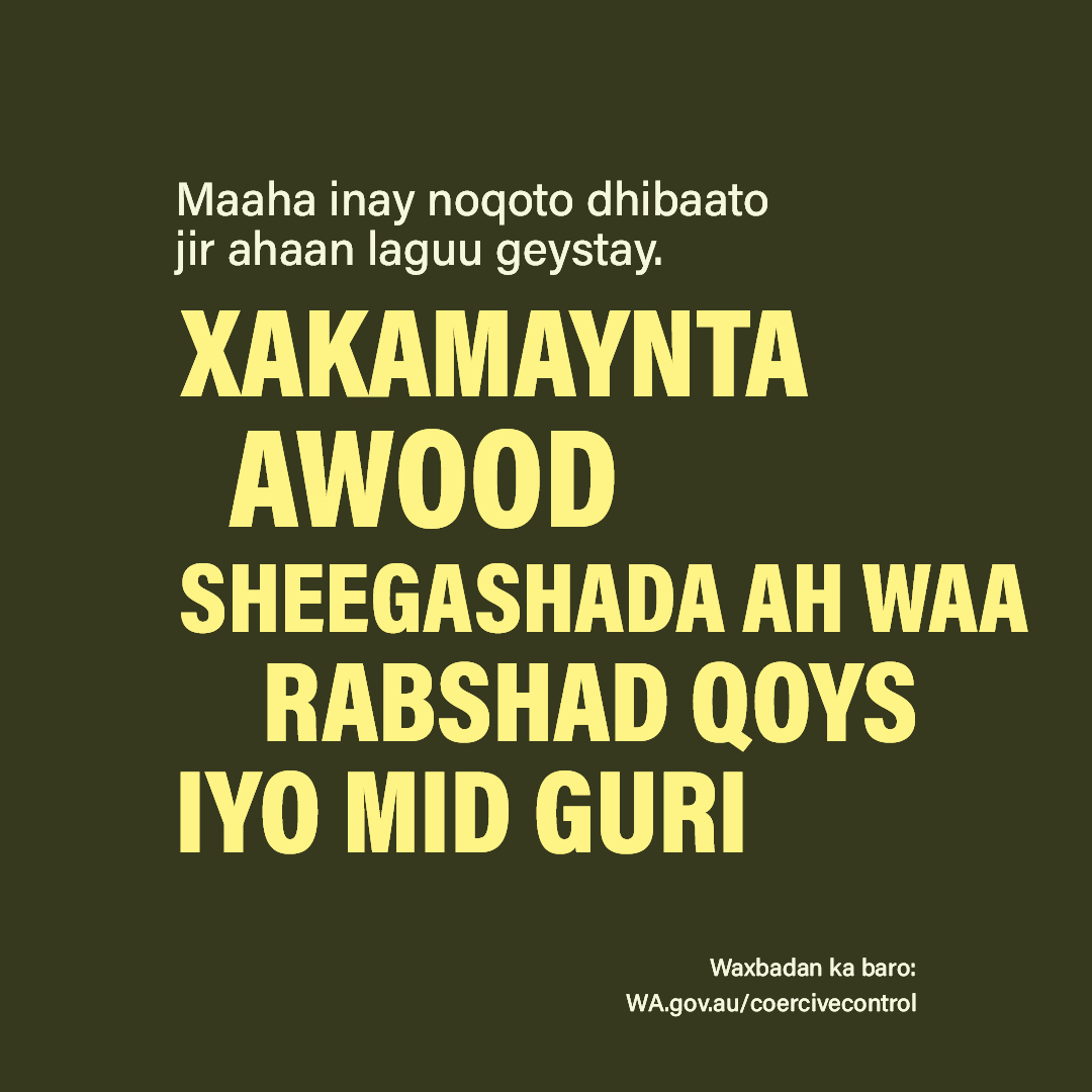 A range of 'Coercion Hurts' campaign resources are available in Somali to download and share with your community.