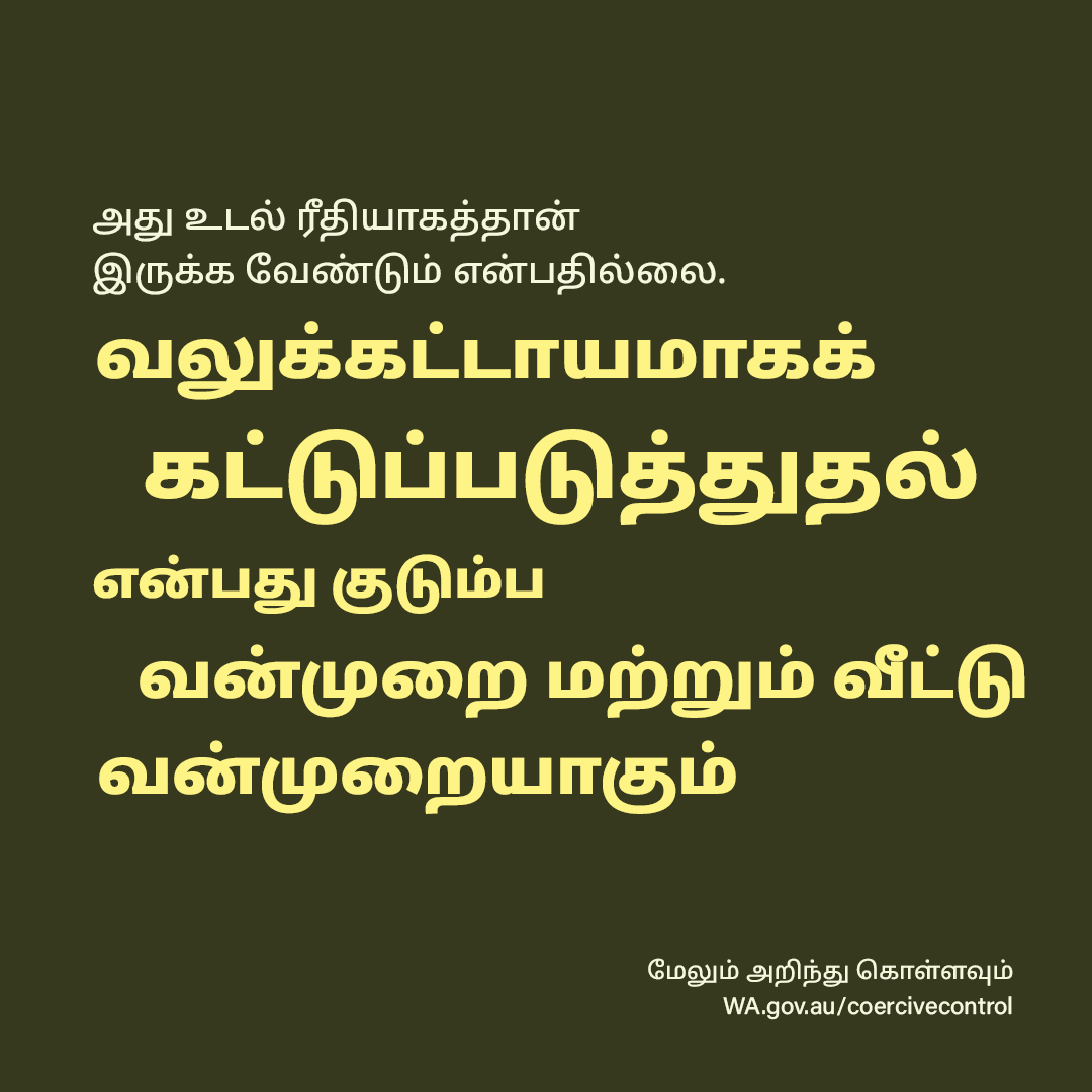 A range of 'Coercion Hurts' campaign resources are available in Tamil to download and share with your community.