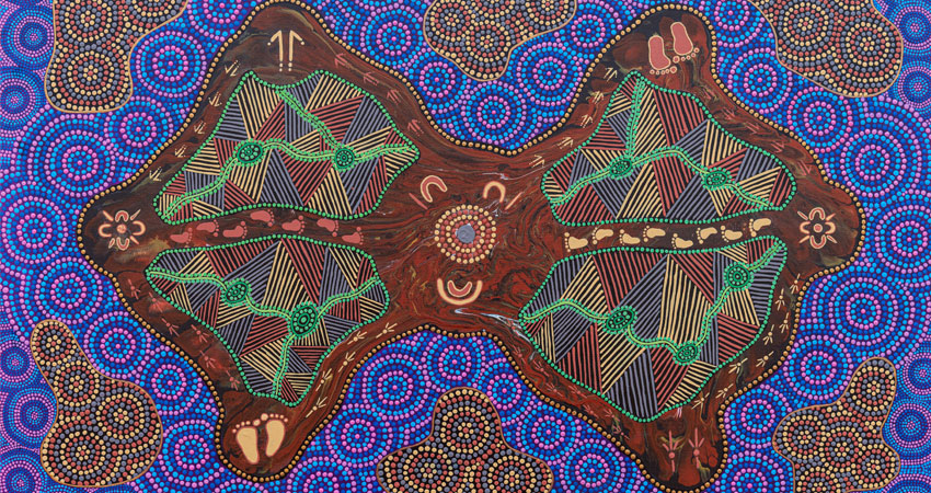 This artwork was created by a Prisoner at Acacia Prison for the Aboriginal Mediation Service.