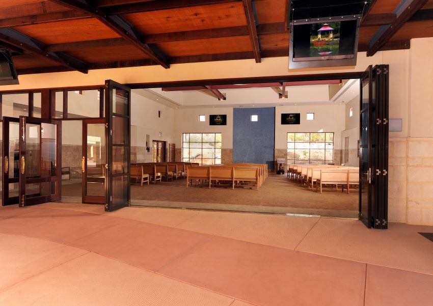 The mid-sized Brown Chapel at Karrakatta can comfortably accommodate 36 people seated, with an additional 104 standing in the chapel. For larger funerals, additional space is available in a covered area outside the chapel along with an external sound system.