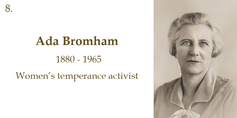 Ada Bromham was born in Victoria, the daughter of a blacksmith and miner. The family came to Western Australia in 1893. In 1908 she formed a partnership and founded a Claremont drapery store. The business prospered and by the 1920s Ada Bromham’s financial situation permitted her to pursue her feminist and temperance interests.