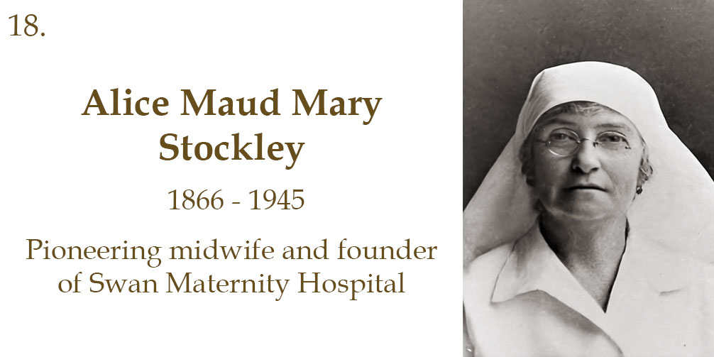 After being abandoned by her husband, Alice supported her four children while building Stockley Maternity Hospital in West Perth, (later renamed Swan Maternity Hospital), three years before King Edward Maternity Hospital opened.