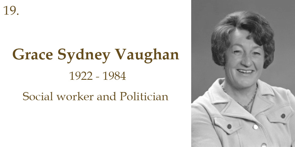 Grace Sydney Ingram was born 1 April 1922 in Neutral Bay Sydney. She left school at age 14 after passing the Intermediate certificate. Grace worked as a clerk-typist and trainee nurse before marrying Walter Septimus Vaughan, a wool classer in 1942. Grace raised three children and returned to formal education in 1962, studying social work.