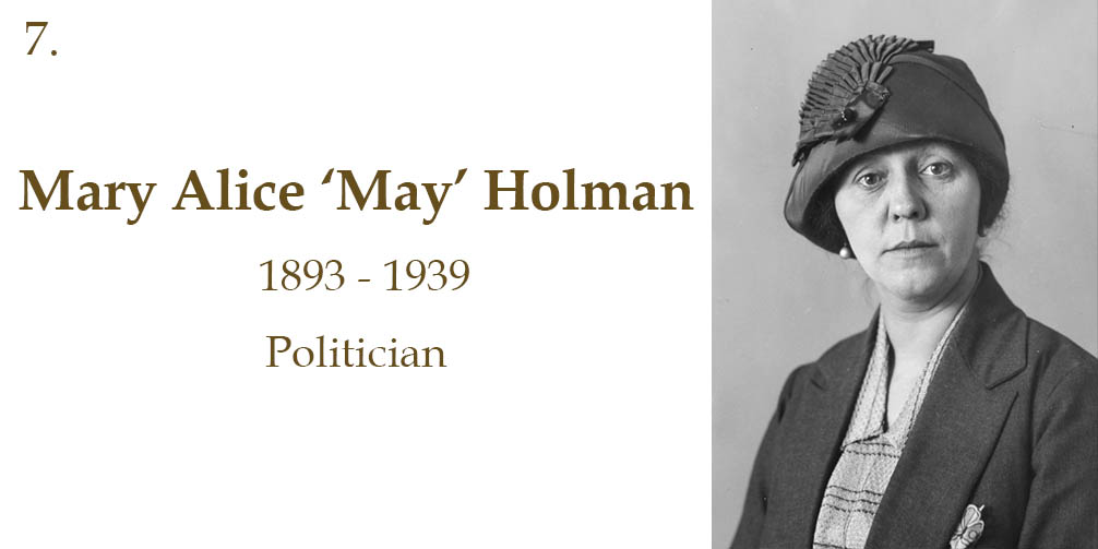 Mary Alice 'May' Holman was born in Broken Hill, New South Wales and came to the Murchison Goldfields with her family in 1896. She was convent-educated in Dongara, a coastal town south of Geraldton, and Perth. Her mother was active in the Labor Women’s organisations and her father was the Secretary of the State branch of the Timber Workers’ Union from 1908-1925 and a Labor member of the Legislative Assembly from 1901-1921.