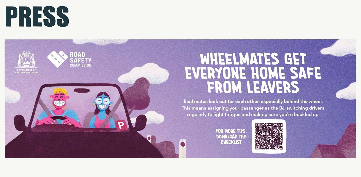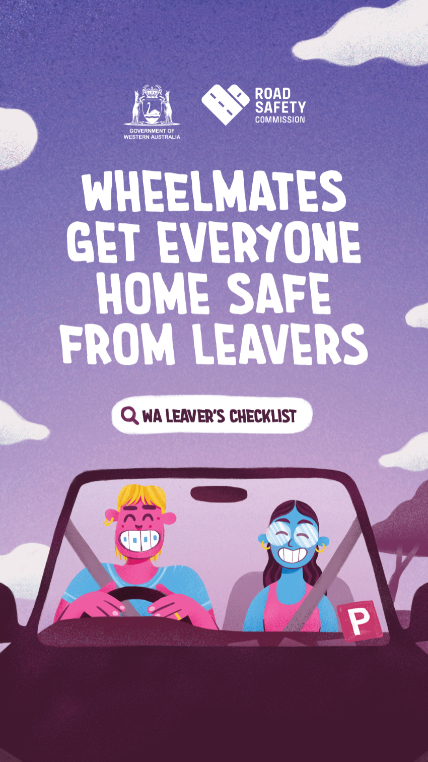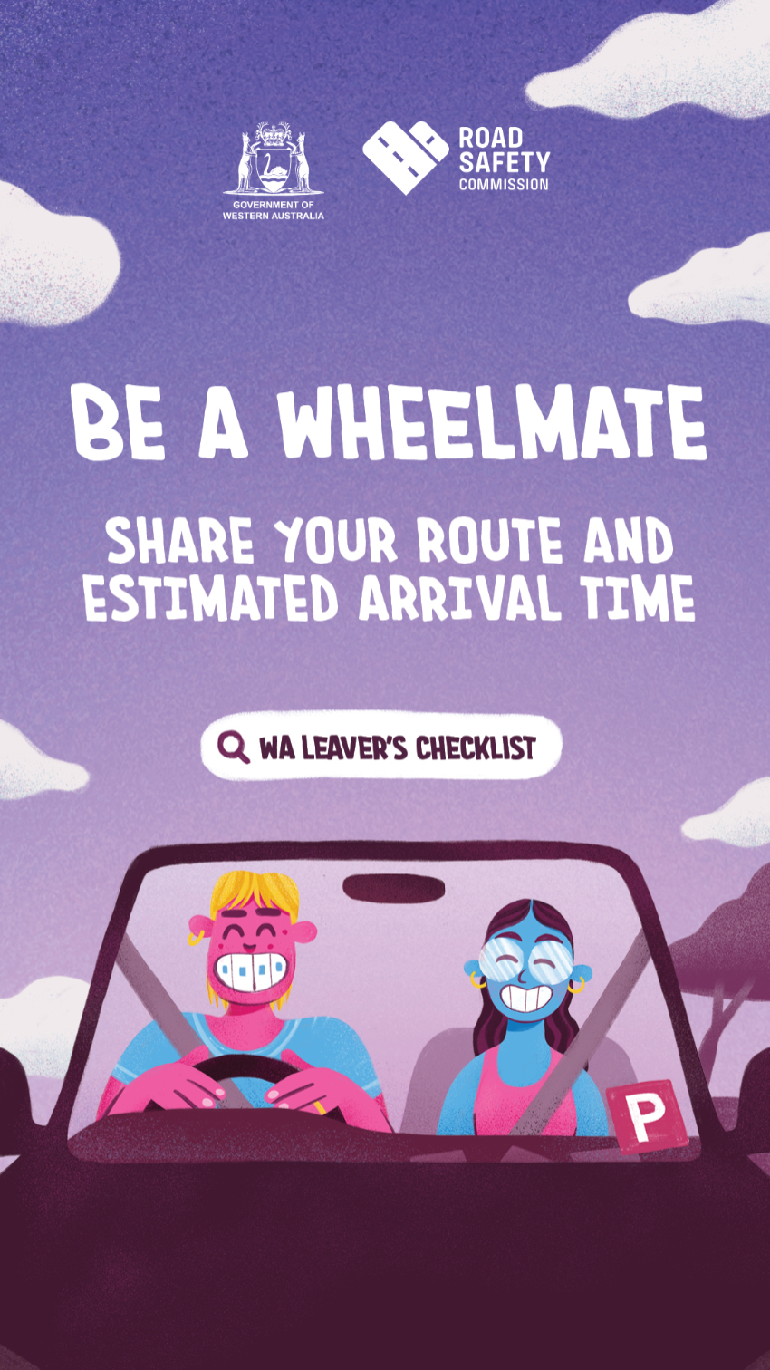 Wheelmates get everyone home safe from Leavers. Wherever you’re heading, real mates look out for each other when behind the wheel. Prepare for your road trip and download the checklist at rsc.wa.gov.au/wheelmates.