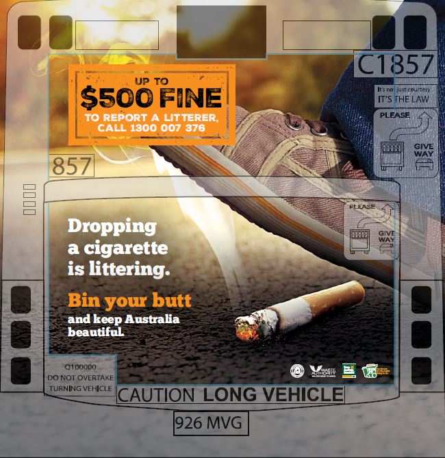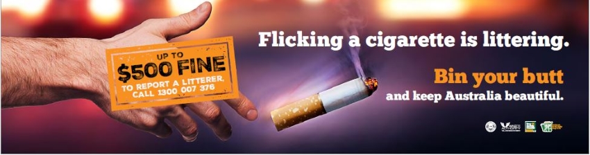 The campaign messaging reminds smokers that flicking or dropping cigarette butts is littering and offenders will face fines.