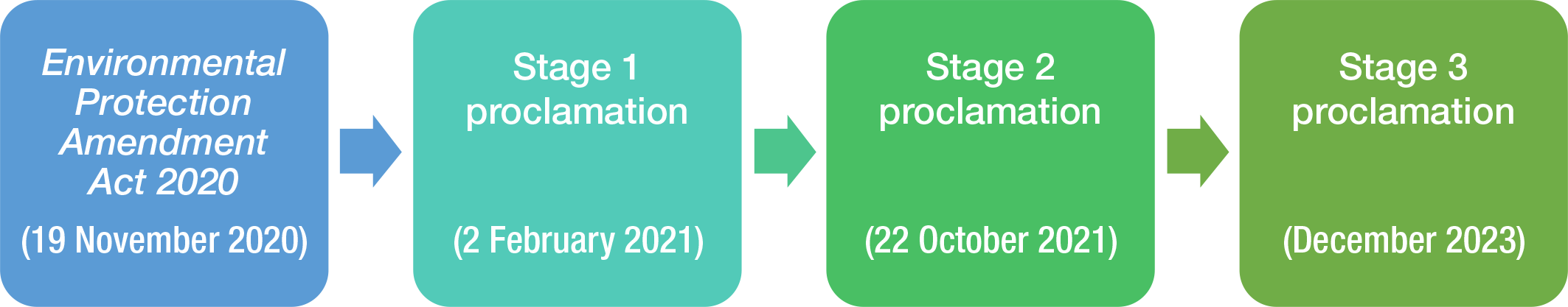 The department is developing regulations and guidance which will support the effective implementation of amendments being proclaimed under each stage.