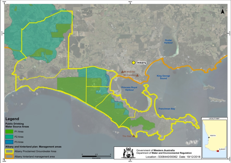 The unproclaimed Albany hinterland contains several large areas of groundwater. In unproclaimed areas, access to confined (or artesian) groundwater, is regulated under the Rights in Water and Irrigation Act 1914. Non-artesian groundwater in unproclaimed areas is unregulated at this stage.